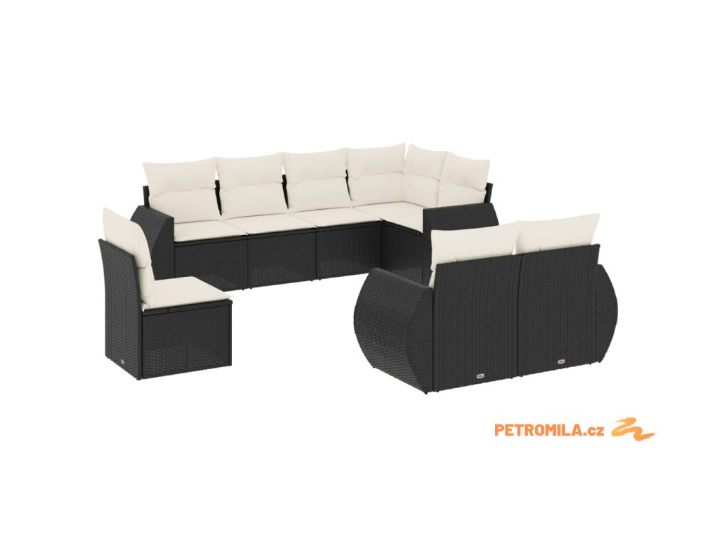 8dílná zahradní sedací souprava s poduškami černá polyratan