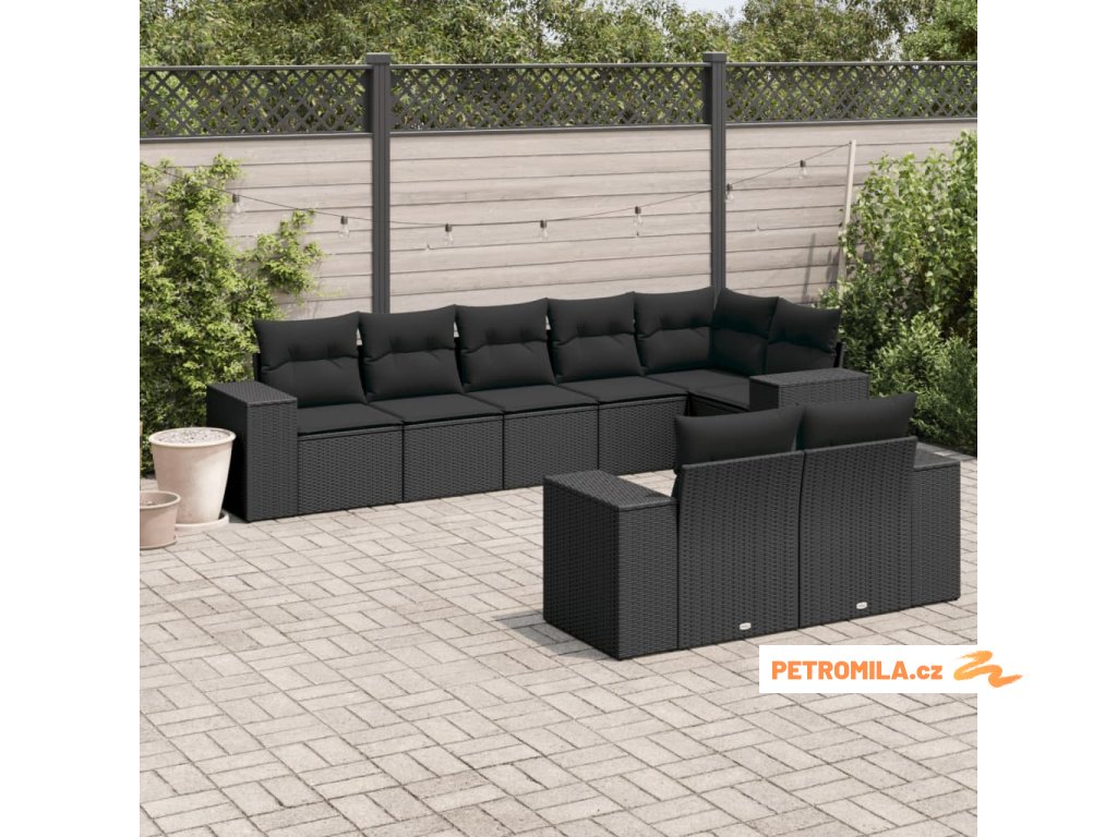 8dílná zahradní sedací souprava s poduškami černá polyratan