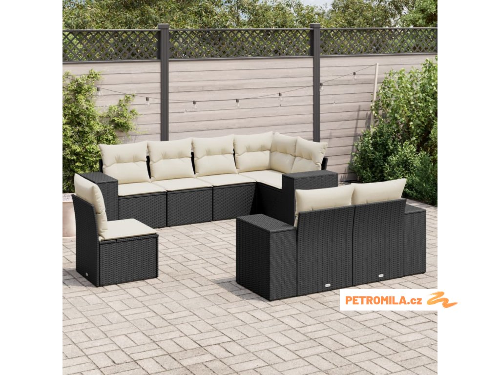 8dílná zahradní sedací souprava s poduškami černá polyratan