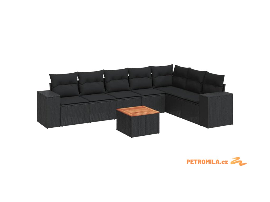 8dílná zahradní sedací souprava s poduškami černá polyratan