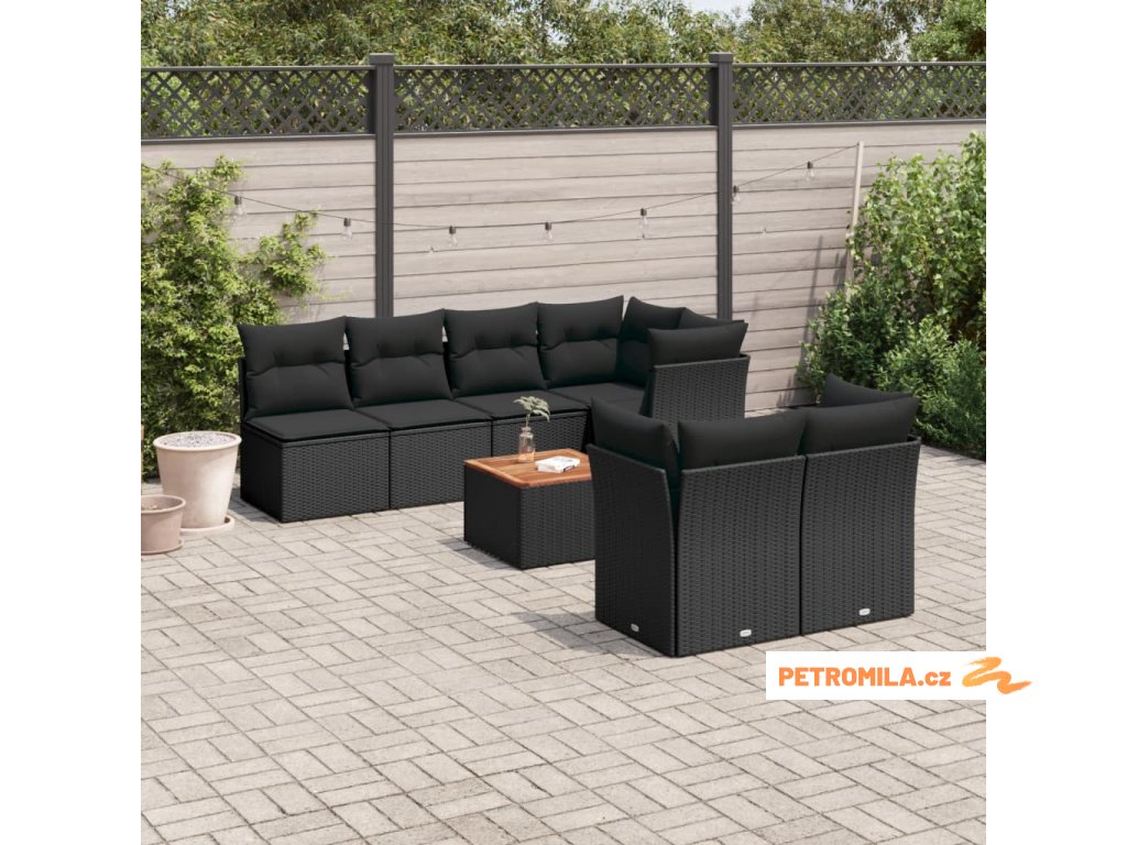 8dílná zahradní sedací souprava s poduškami černá polyratan