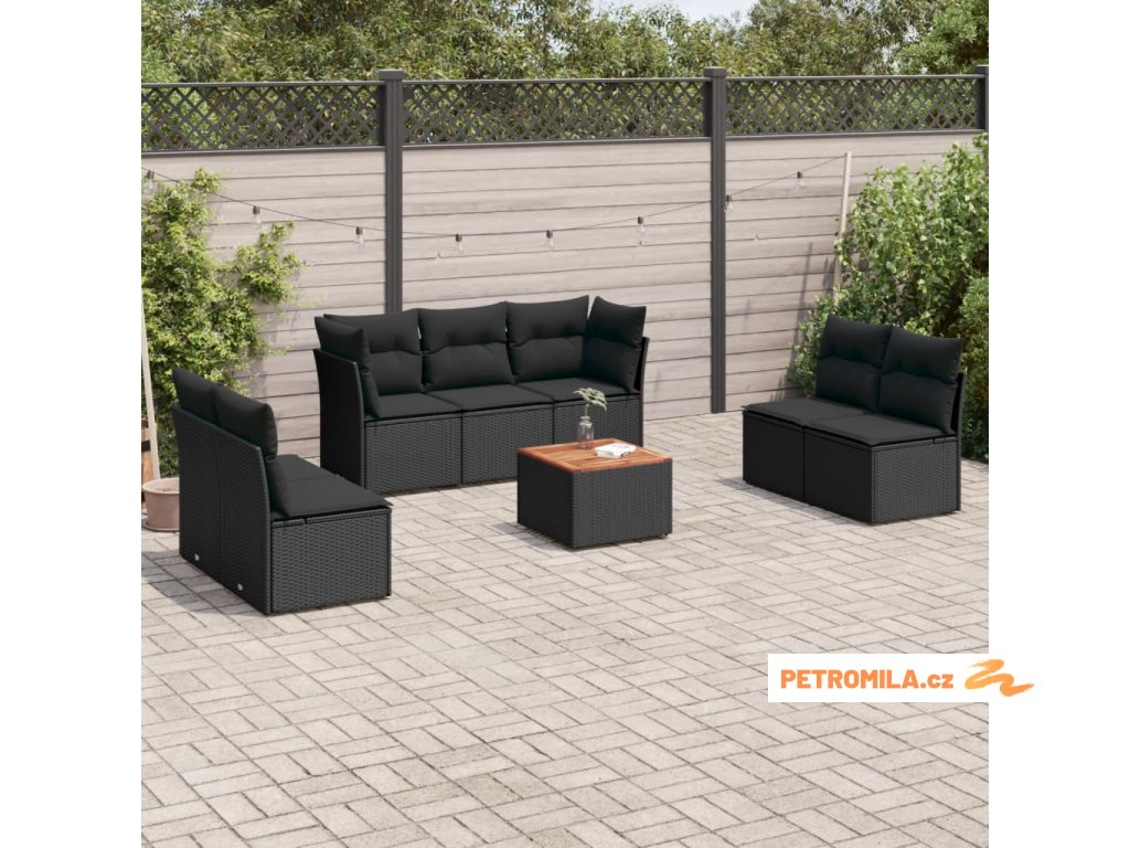 8dílná zahradní sedací souprava s poduškami černá polyratan