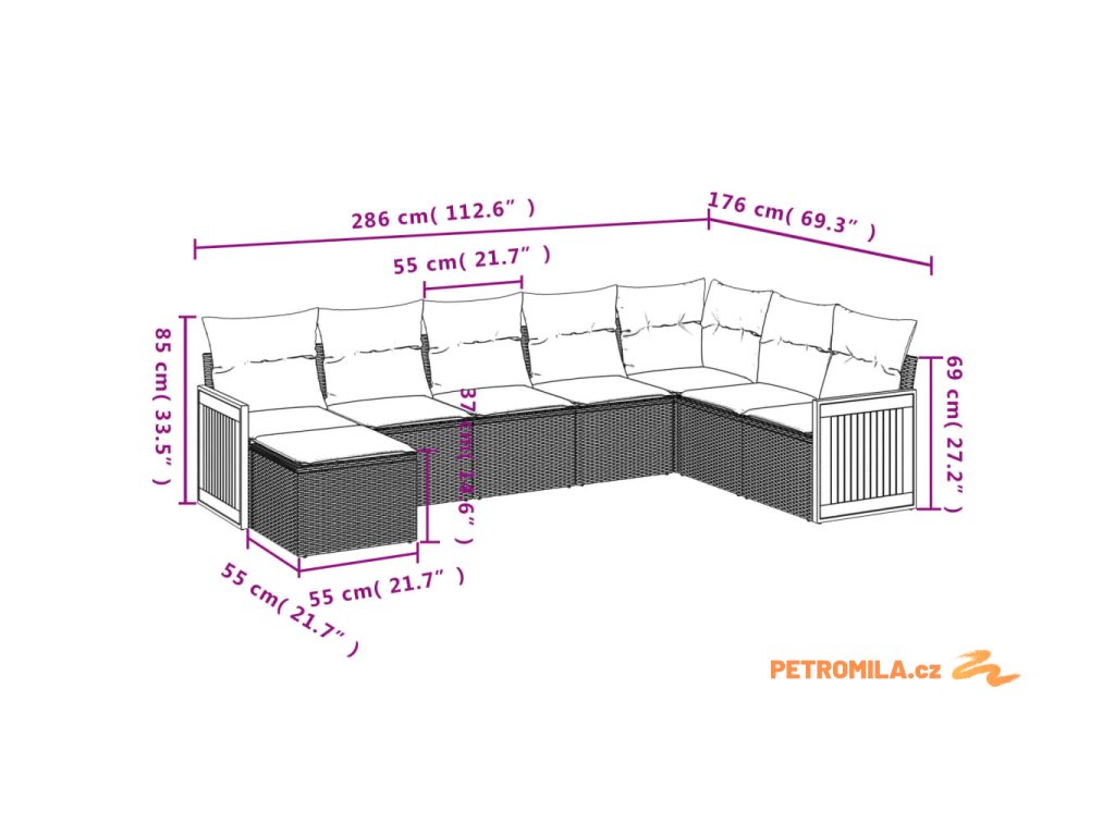 Sada zahradních pohovek s polštářem 7 pcs Béžová Poly ratan