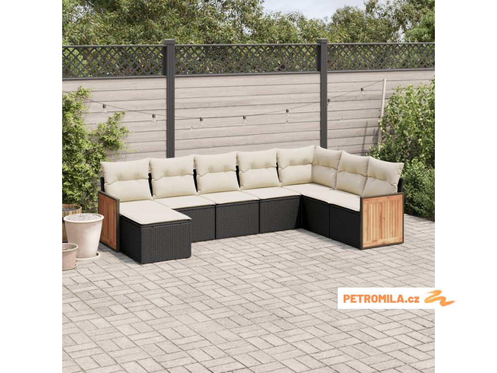 8dílná zahradní sedací souprava s poduškami černá polyratan