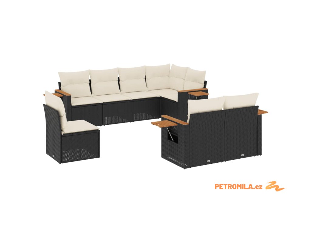 8dílná zahradní sedací souprava s poduškami černá polyratan