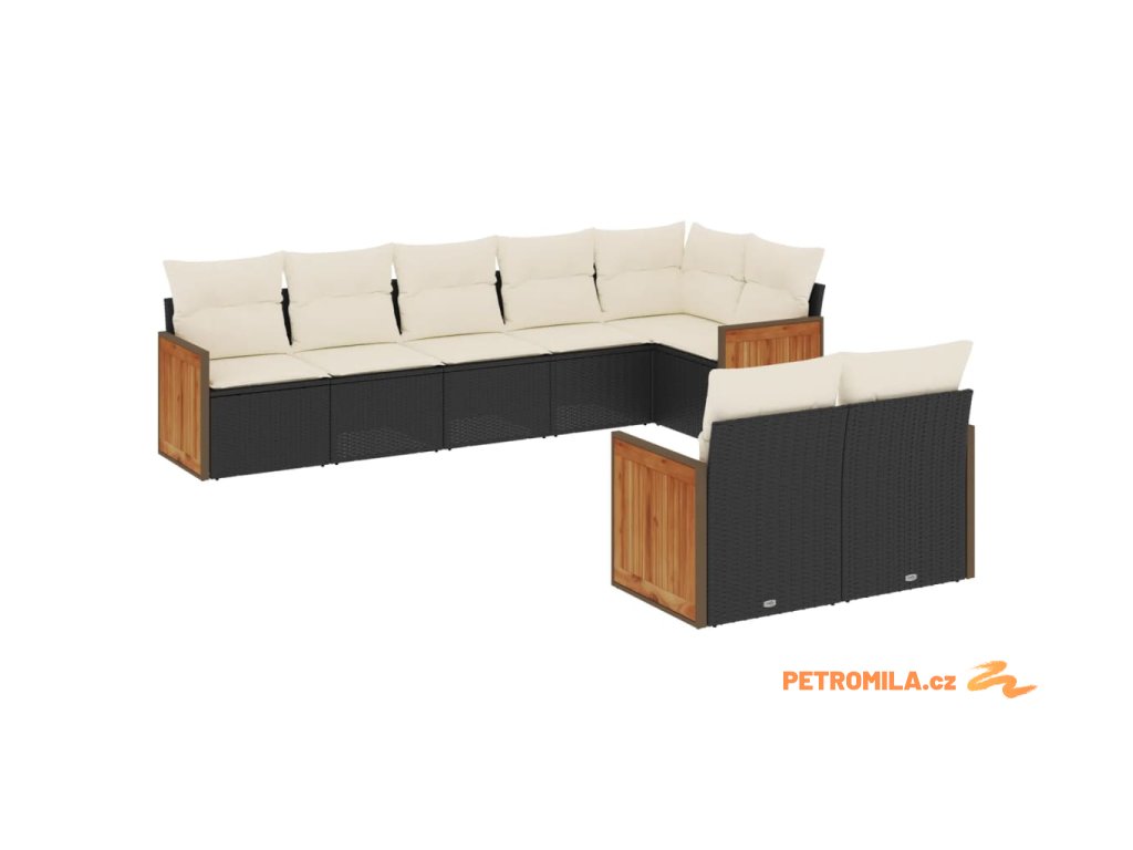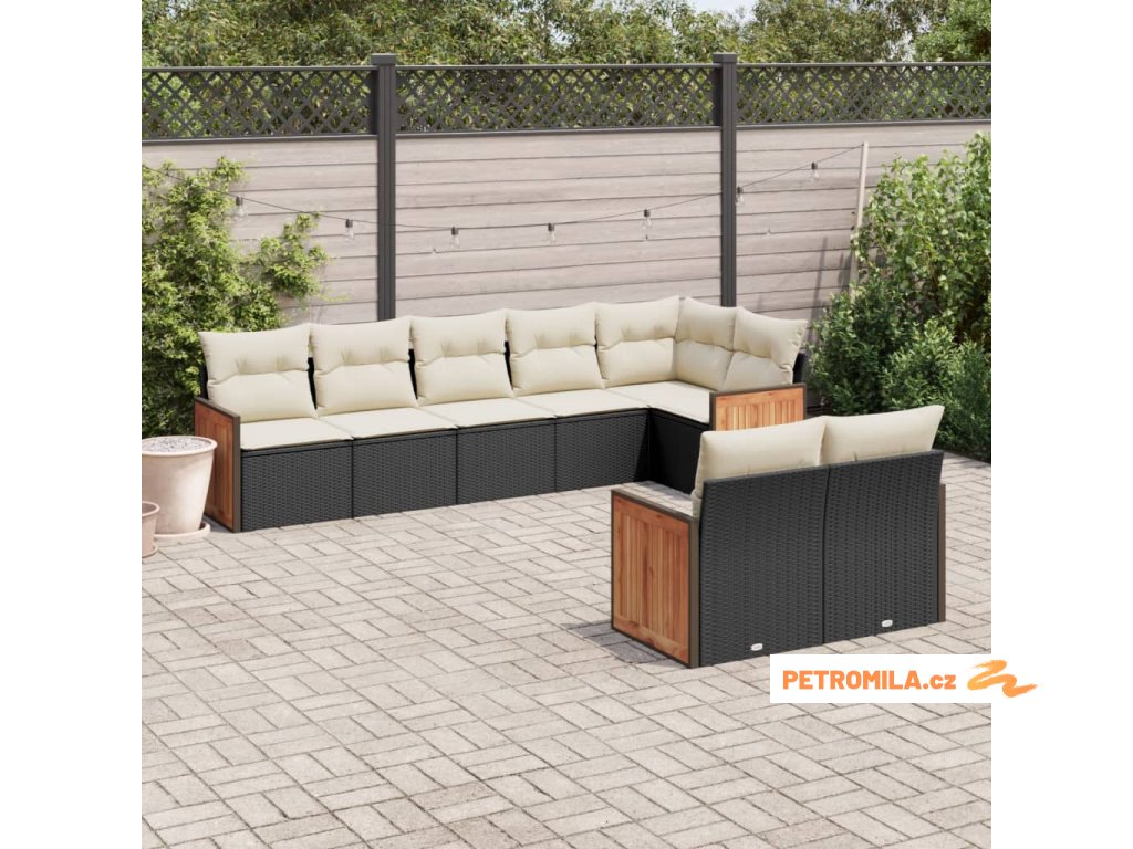 8dílná zahradní sedací souprava s poduškami černá polyratan