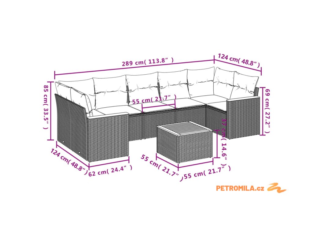 Sada zahradních pohovek s polštářem 8 pcs Béžová Poly ratan