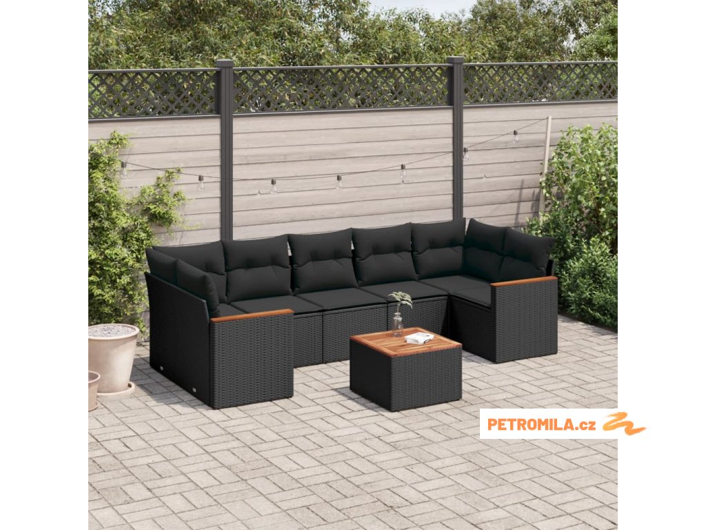 8dílná zahradní sedací souprava s poduškami černá polyratan