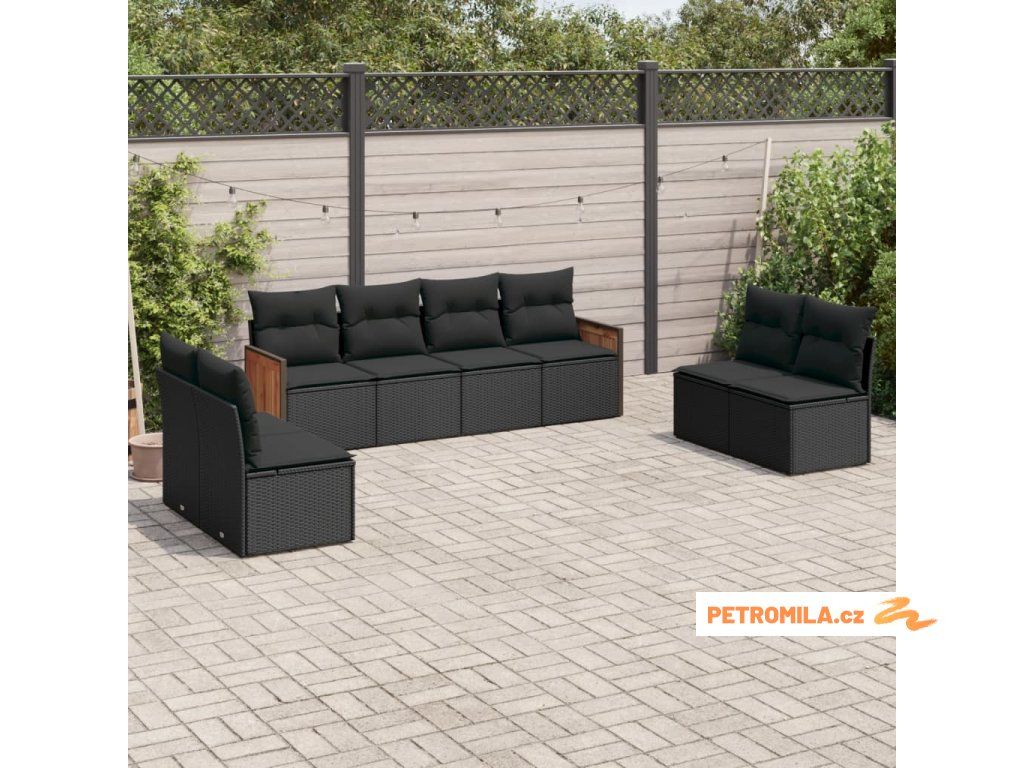 8dílná zahradní sedací souprava s poduškami černá polyratan