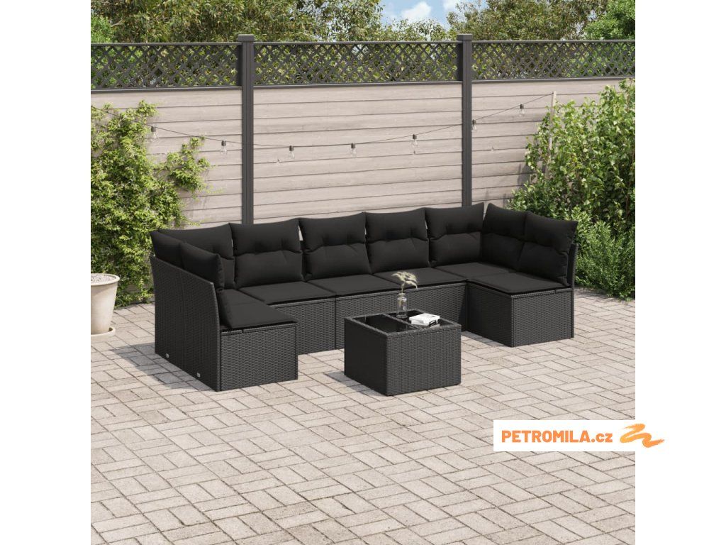 8dílná zahradní sedací souprava s poduškami černá polyratan