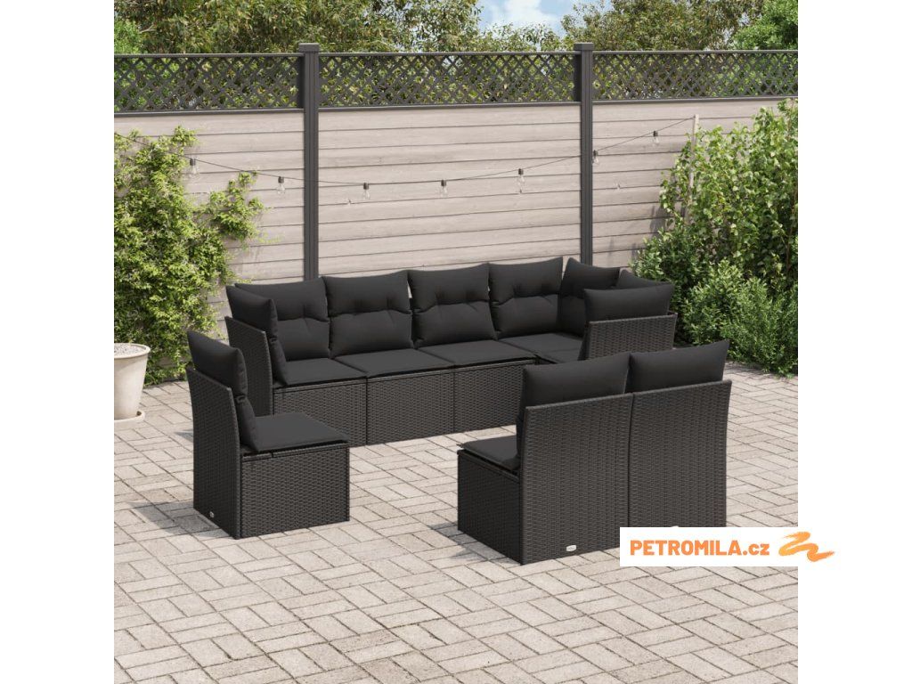 8dílná zahradní sedací souprava s poduškami černá polyratan