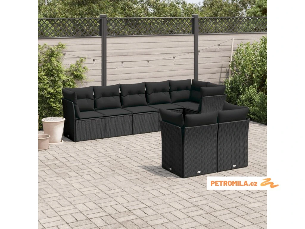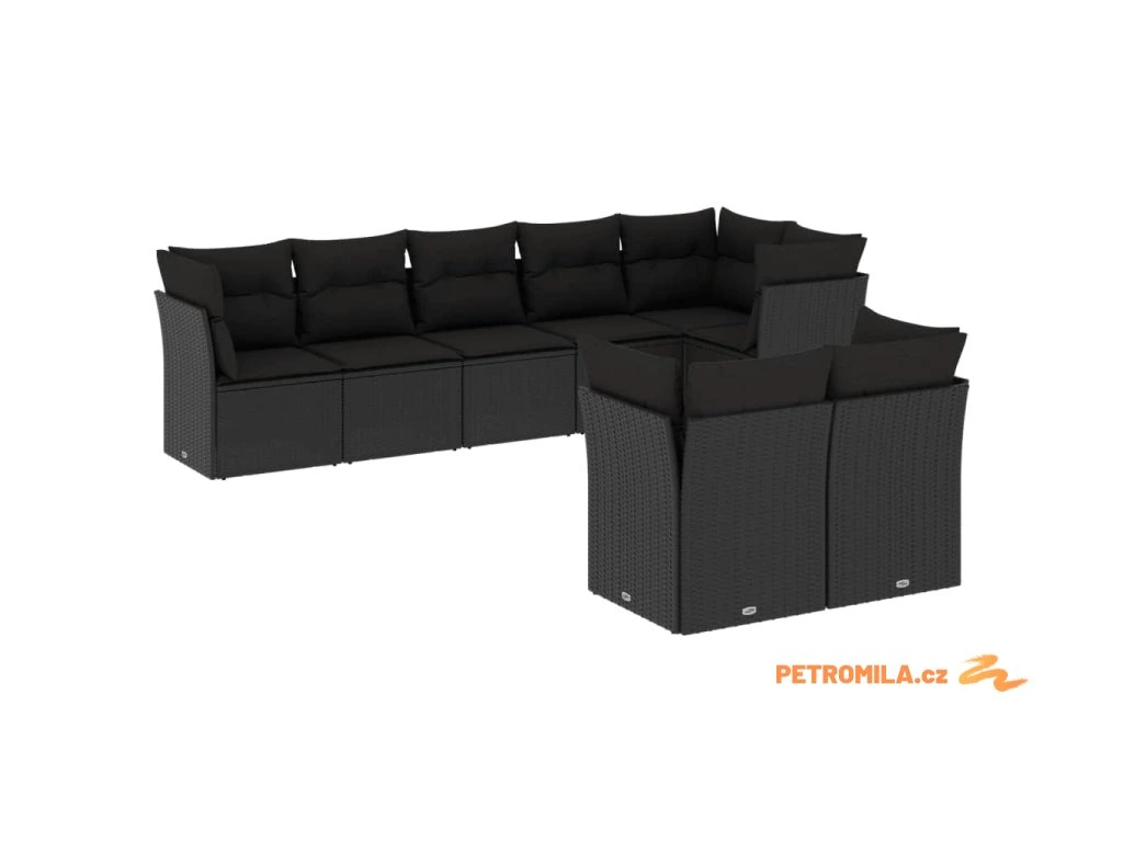 8dílná zahradní sedací souprava s poduškami černá polyratan