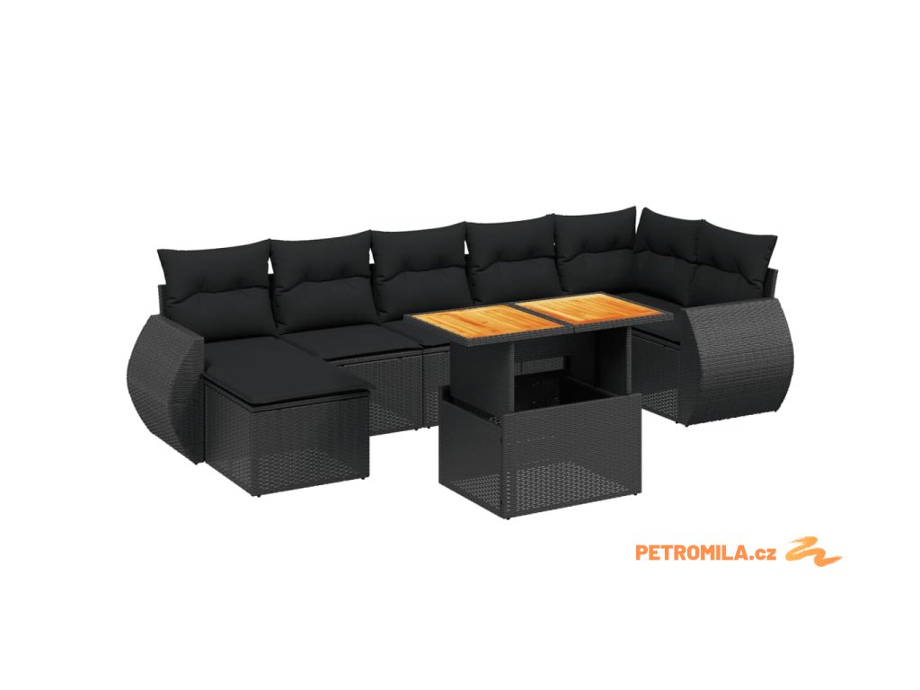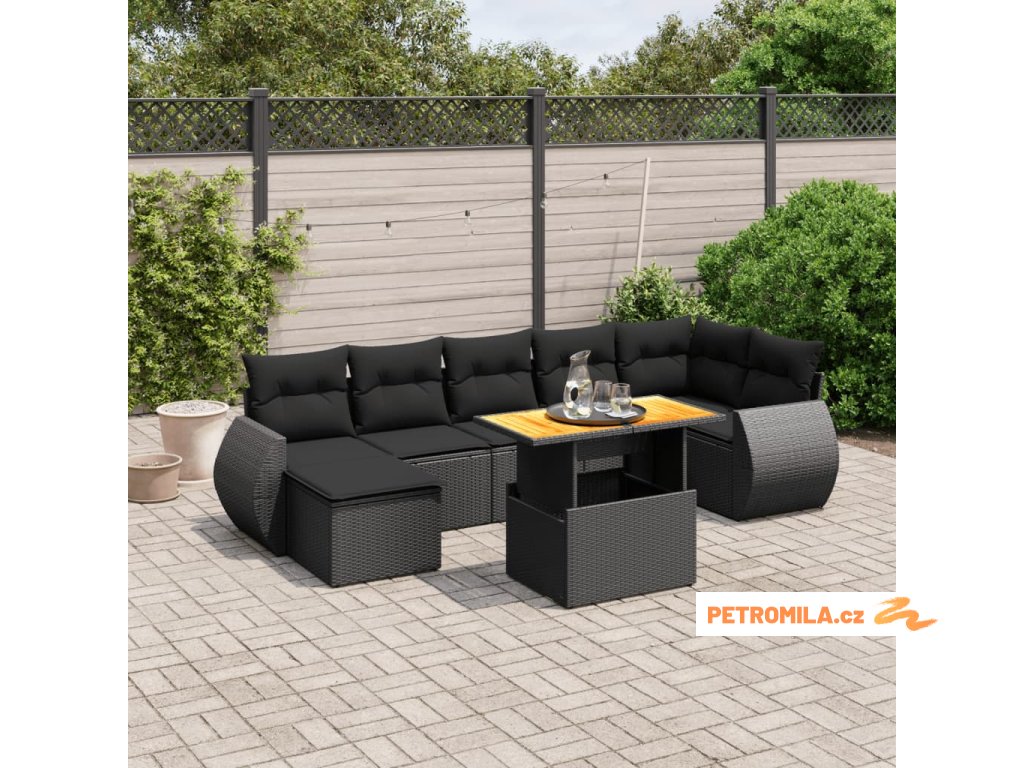 8dílná zahradní sedací souprava s poduškami černá polyratan
