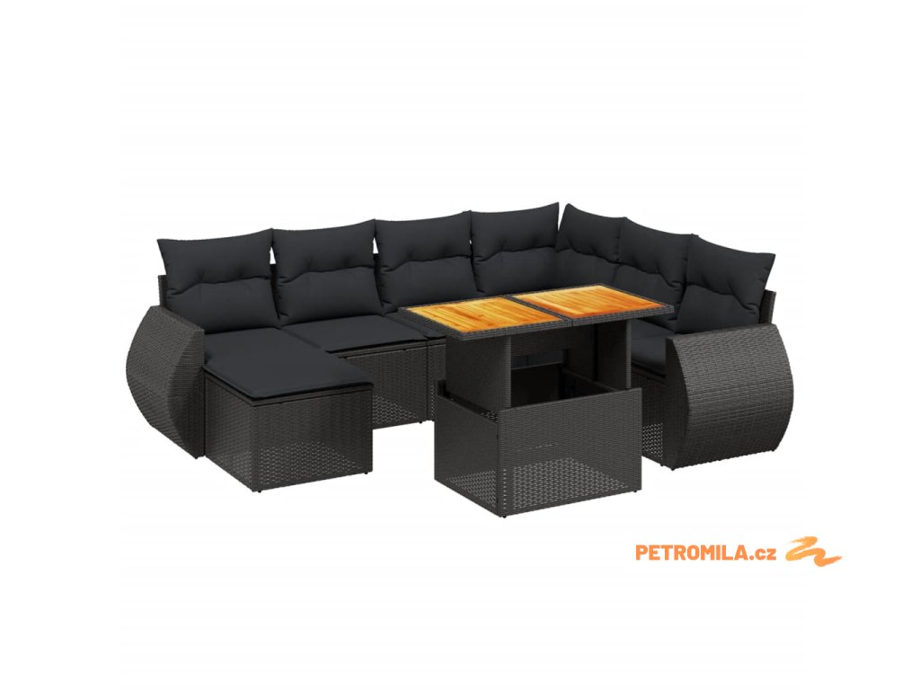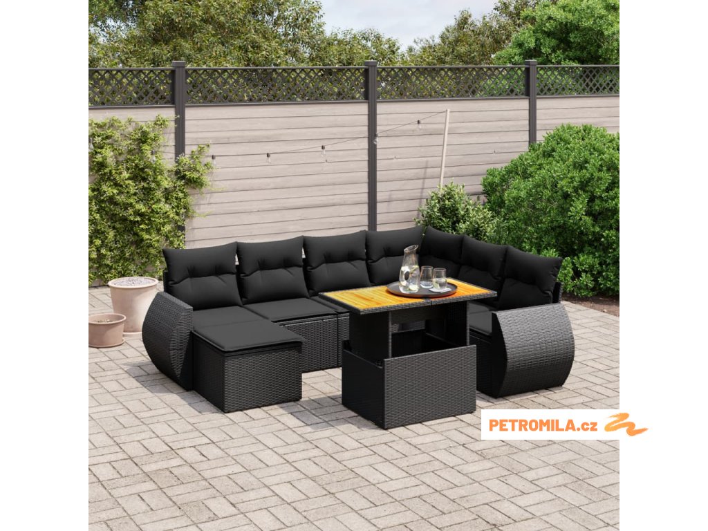 8dílná zahradní sedací souprava s poduškami černá polyratan