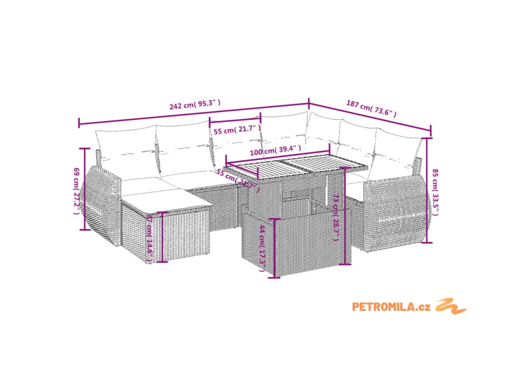 - Modulární design: Tato sada venkovního nábytku se vyznačuje modulární konstrukcí, je tedy zcela flexibilní a lze ji snadno přemisťovat, takže si můžete uspořádat venkovní nábytek dle vašich potřeb.