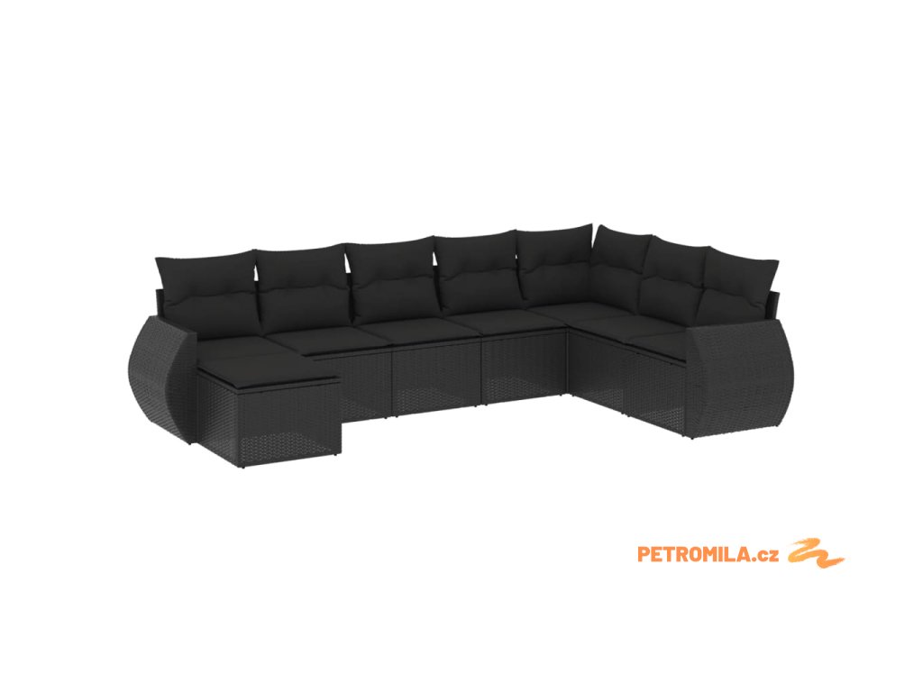 8dílná zahradní sedací souprava s poduškami černá polyratan