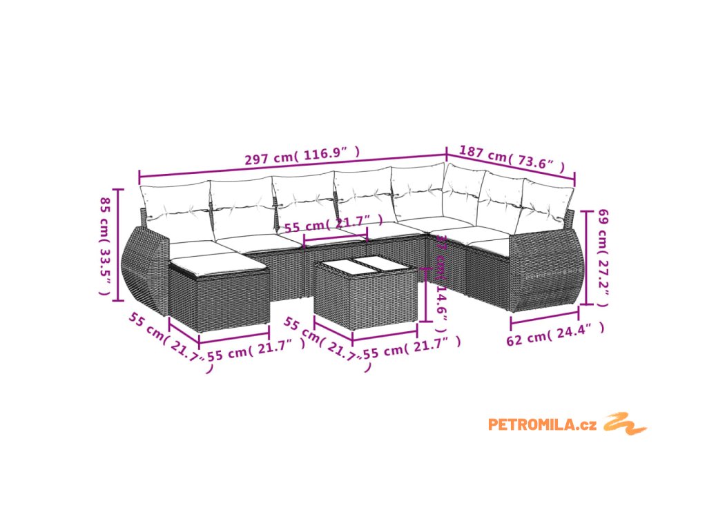 Sada zahradních pohovek s polštářem 9 pcs Béžová Poly ratan