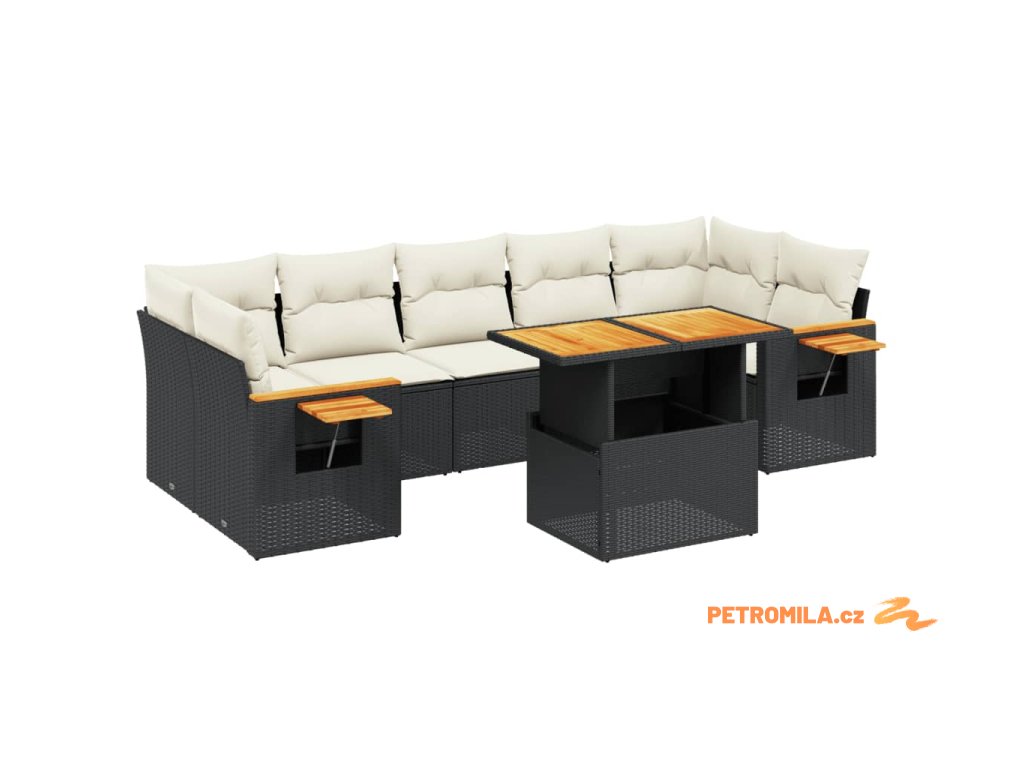 8dílná zahradní sedací souprava s poduškami černá polyratan