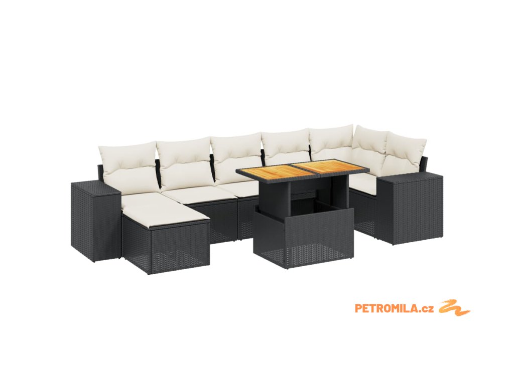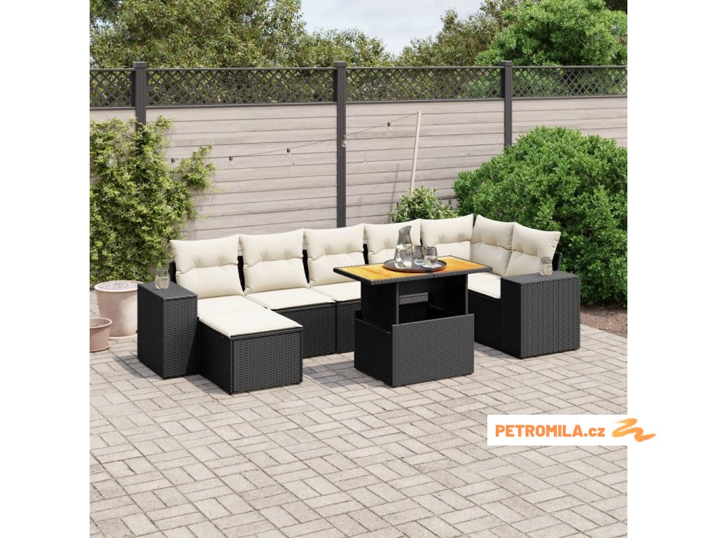 7dílný zahradní jídelní set s poduškami černý polyratan