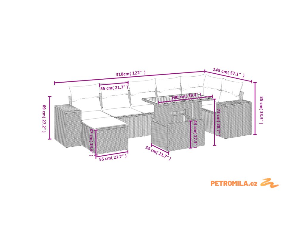 Sada zahradních pohovek s polštářem 9 pcs Béžová Poly ratan