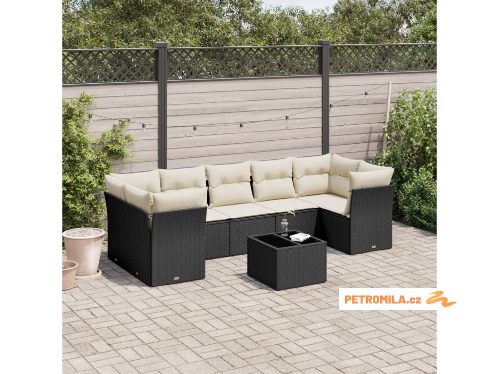 8dílná zahradní sedací souprava s poduškami černá polyratan