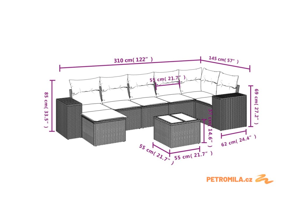 Sada zahradních pohovek 8 pcs Béžová polyratan