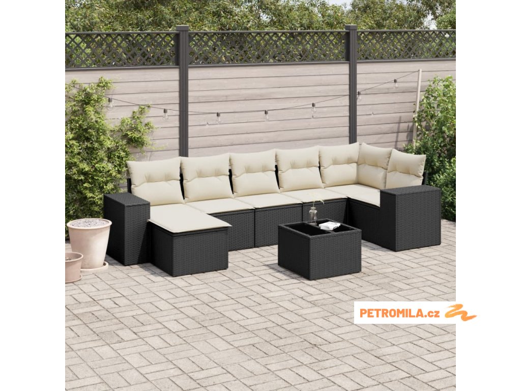 8dílná zahradní sedací souprava s poduškami černá polyratan