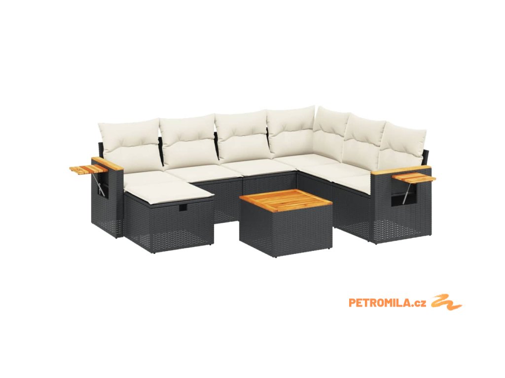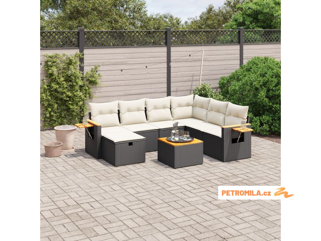 8dílná zahradní sedací souprava s poduškami černá polyratan