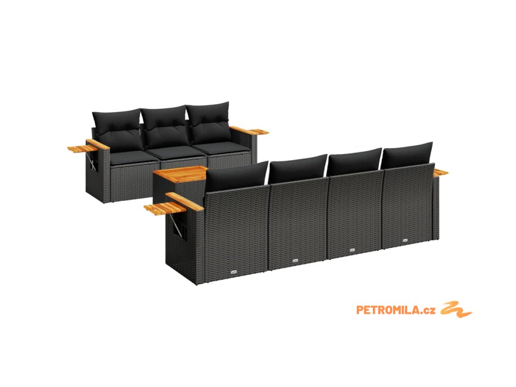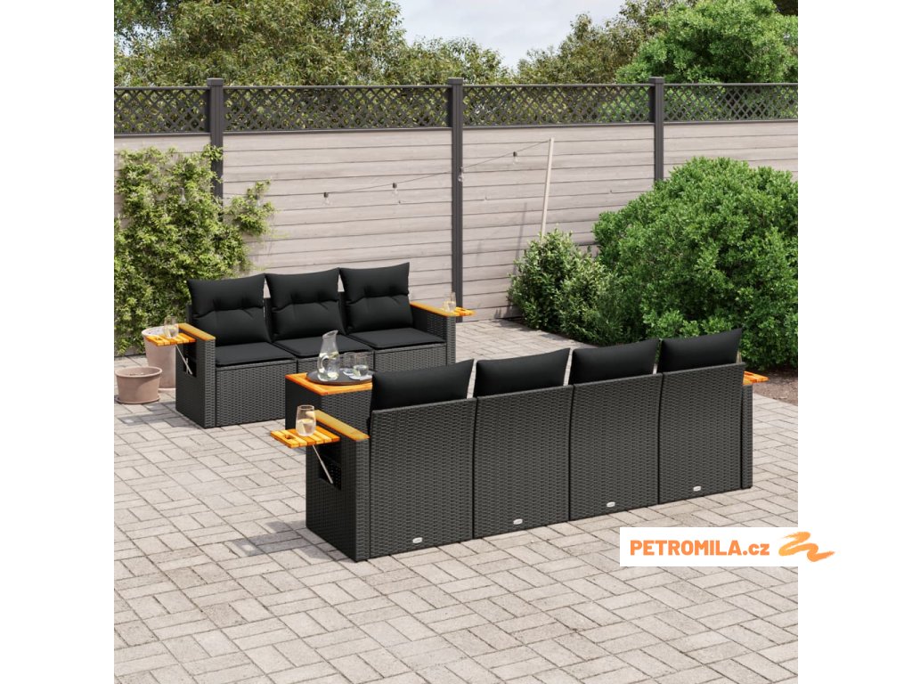 8dílná zahradní sedací souprava s poduškami černá polyratan