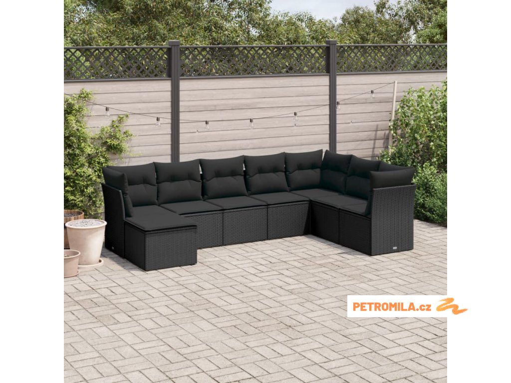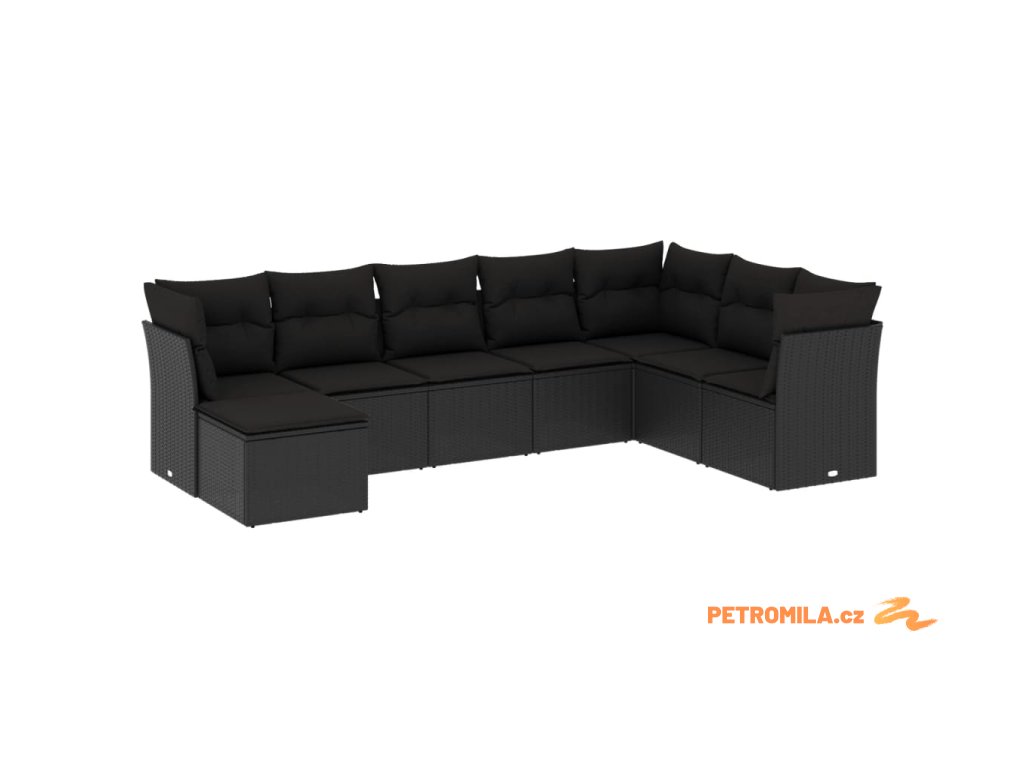 8dílná zahradní sedací souprava s poduškami černá polyratan
