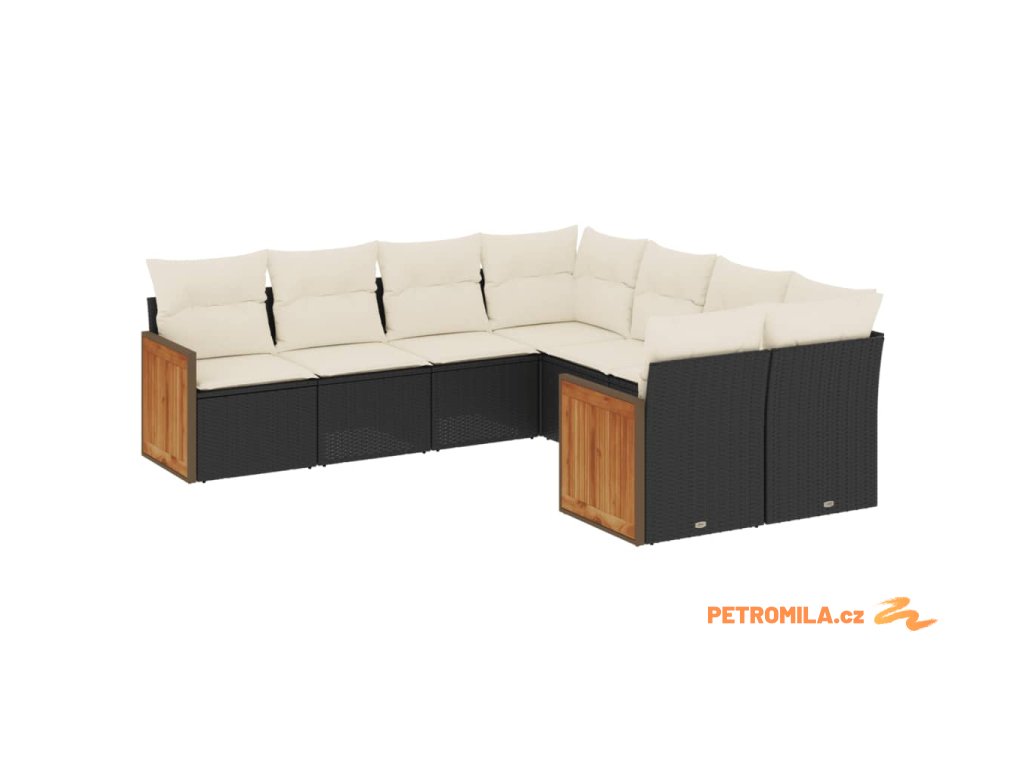 8dílná zahradní sedací souprava s poduškami černá polyratan