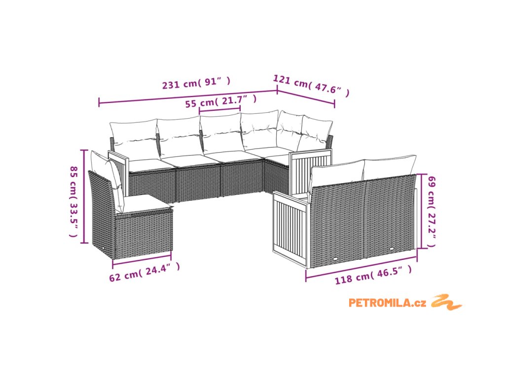 Sada zahradních pohovek s polštářem 9 pcs Béžová Poly ratan