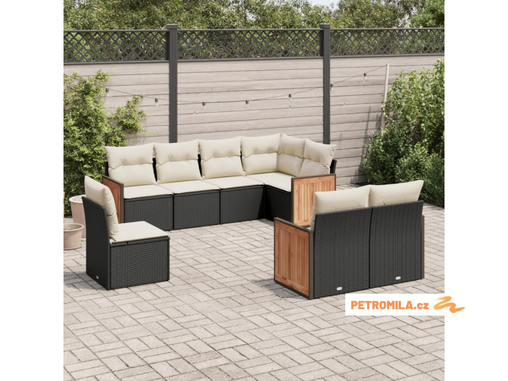 8dílná zahradní sedací souprava s poduškami černá polyratan