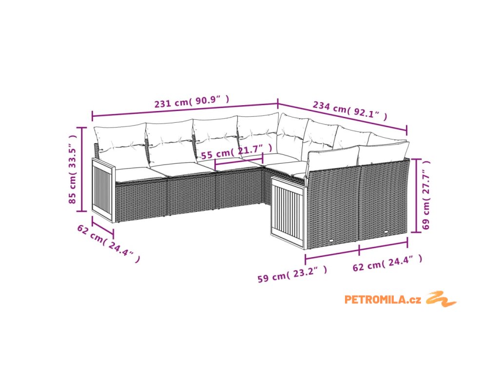 Sada zahradních pohovek 8 pcs Šedá polyratan