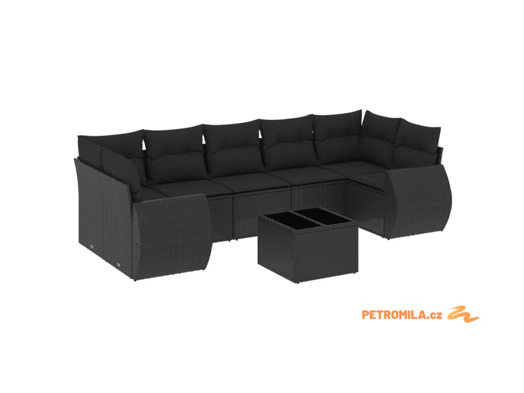 Sada zahradních pohovek 8 pcs Černá polyratan