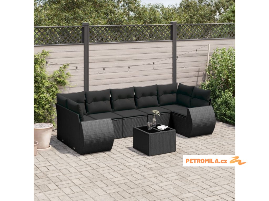 8dílná zahradní sedací souprava s poduškami černá polyratan