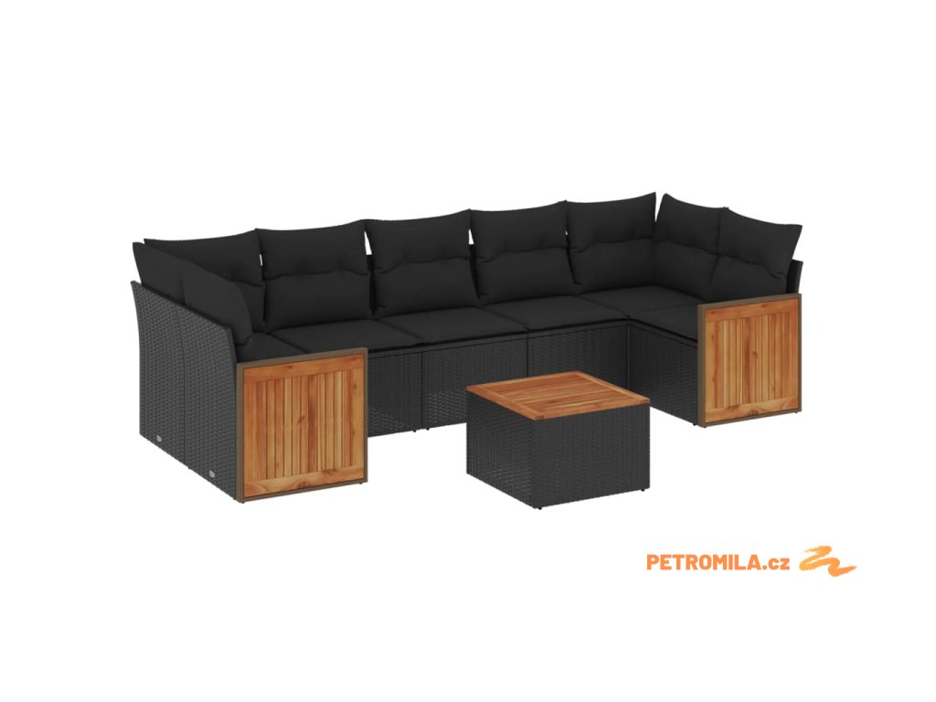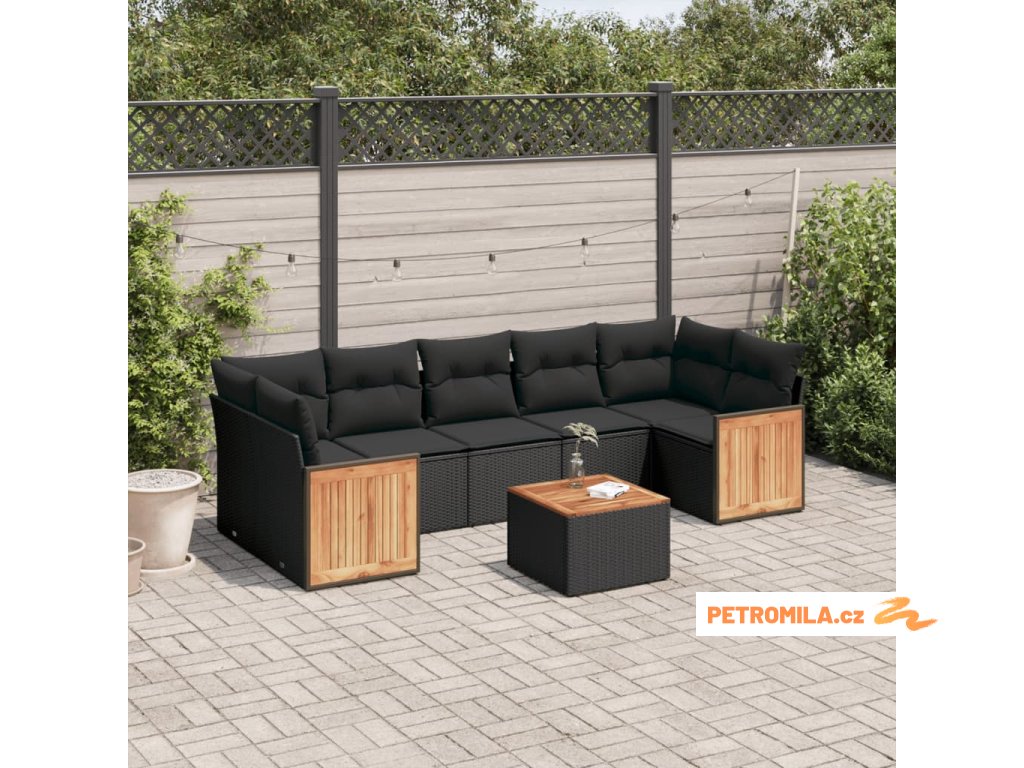 8dílná zahradní sedací souprava s poduškami černá polyratan