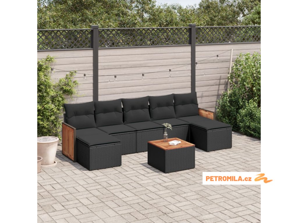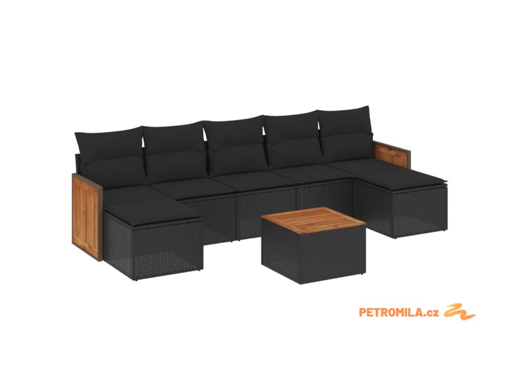 8dílná zahradní sedací souprava s poduškami černá polyratan