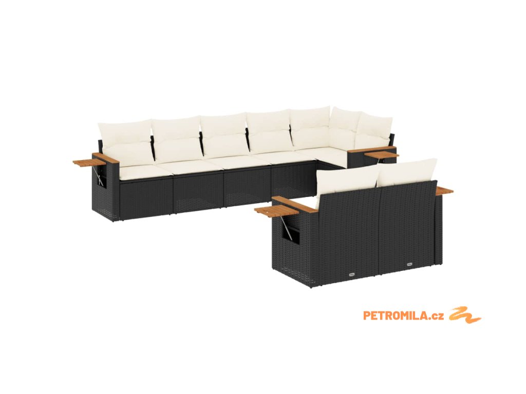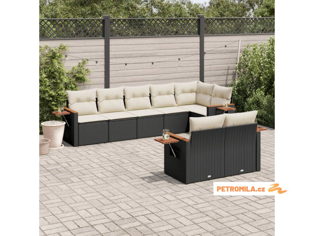 8dílná zahradní sedací souprava s poduškami černá polyratan