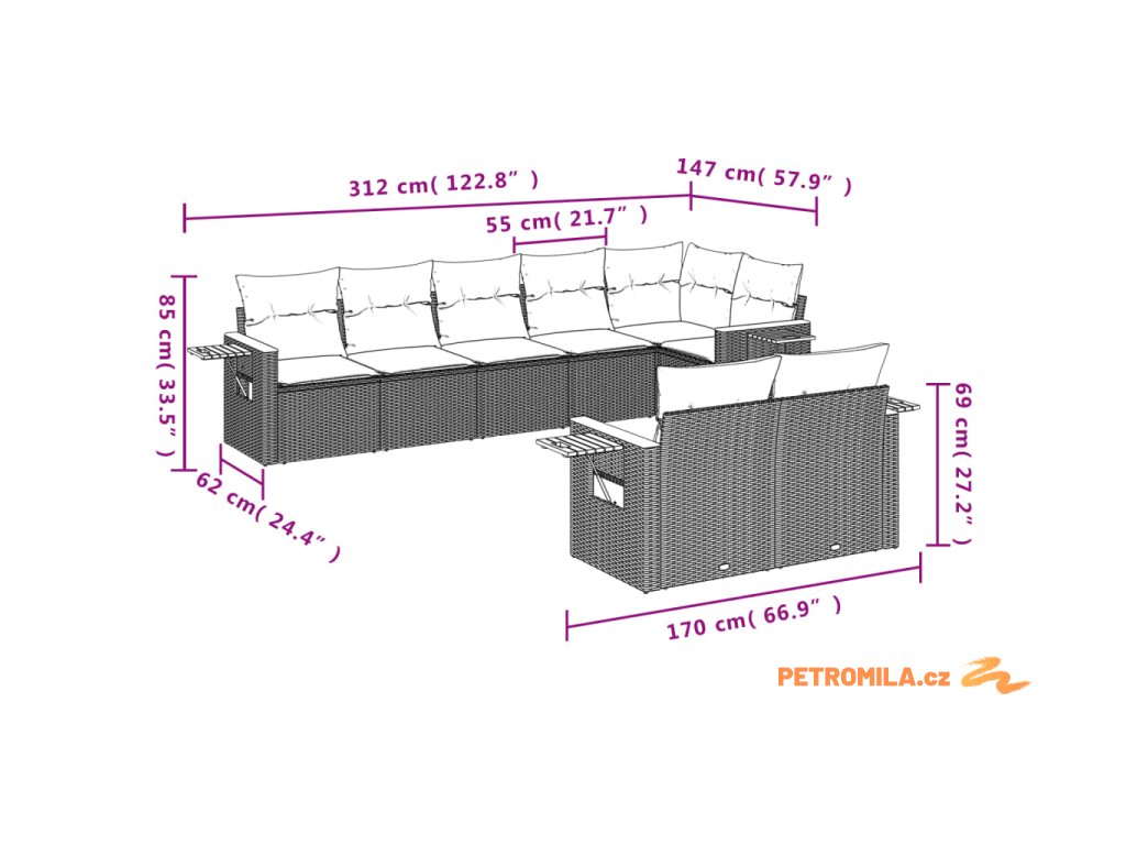 Sada zahradních pohovek s polštářem 9 pcs Béžová Poly ratan