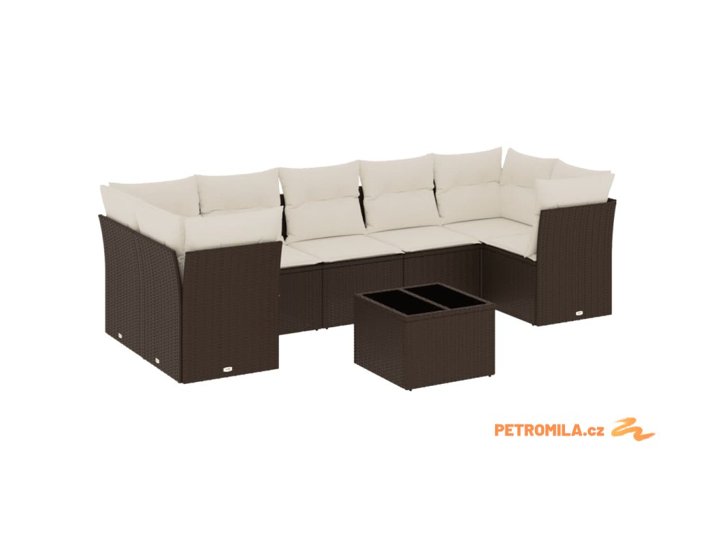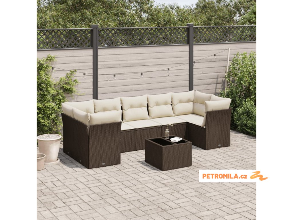 8dílná zahradní sedací souprava s poduškami hnědá polyratan