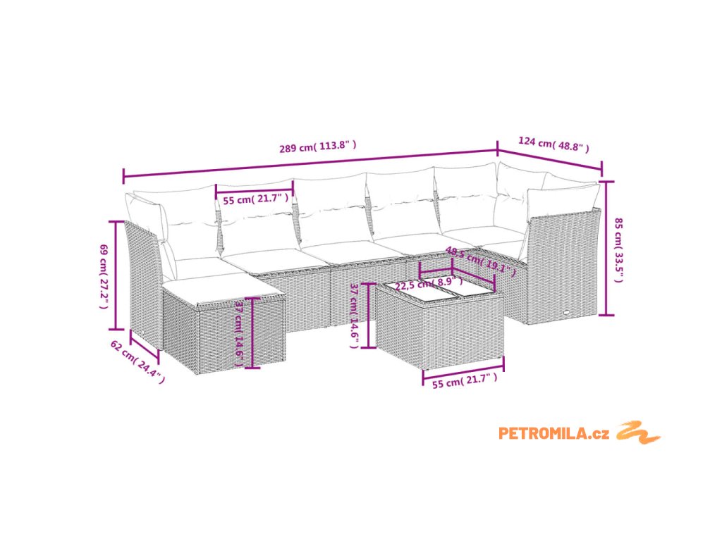 Sada zahradních pohovek s polštářem 8 pcs Béžová Poly ratan