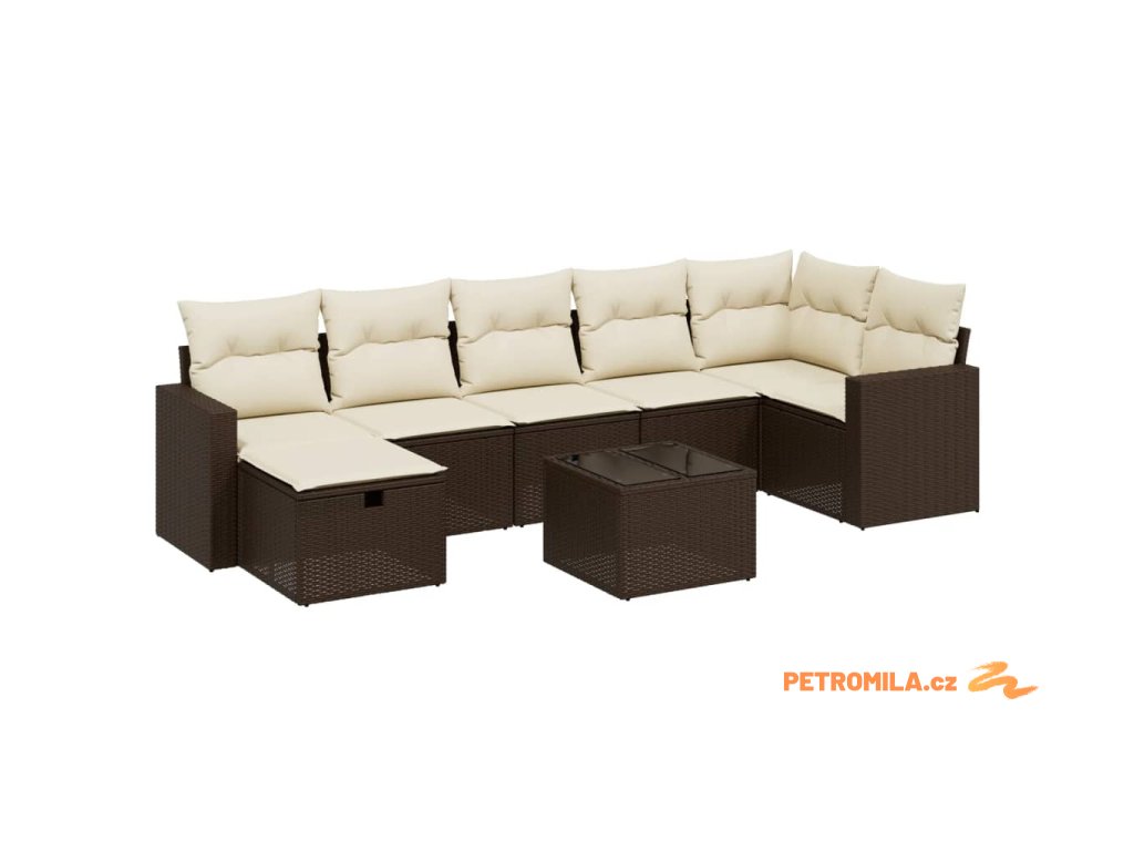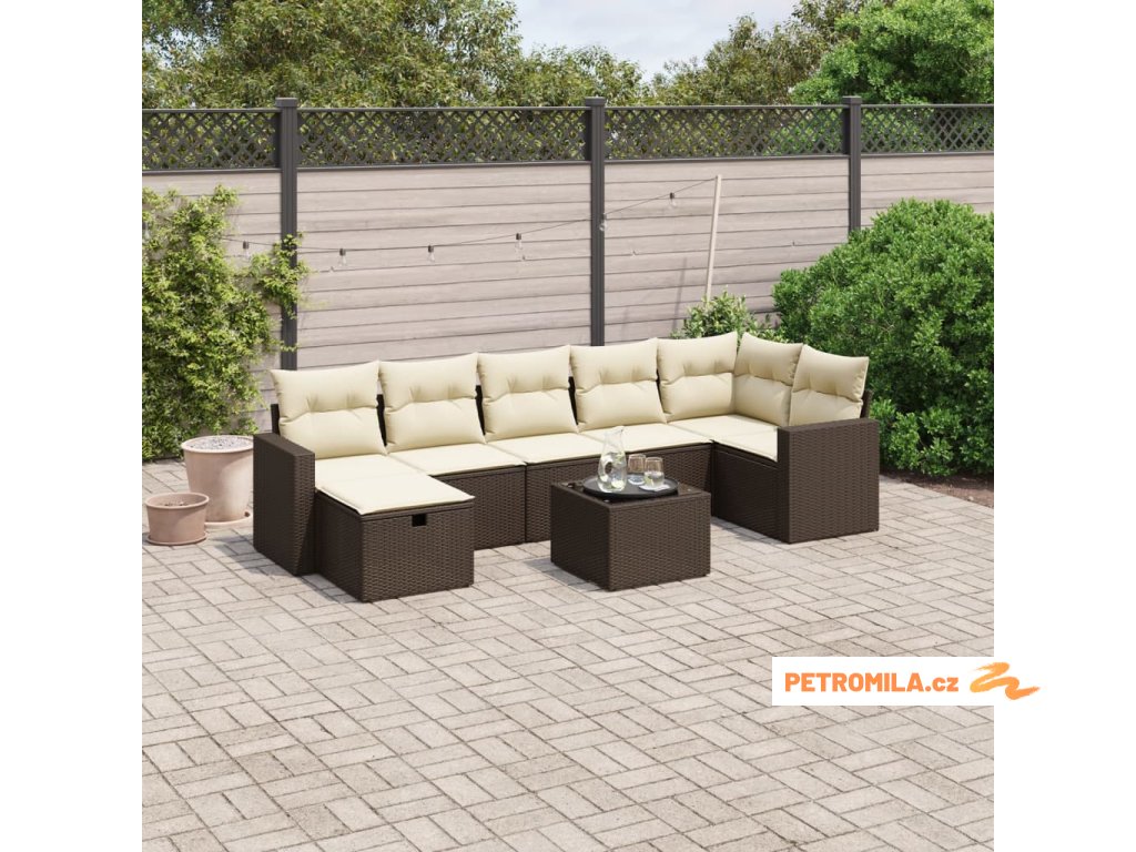 8dílná zahradní sedací souprava s poduškami hnědá polyratan