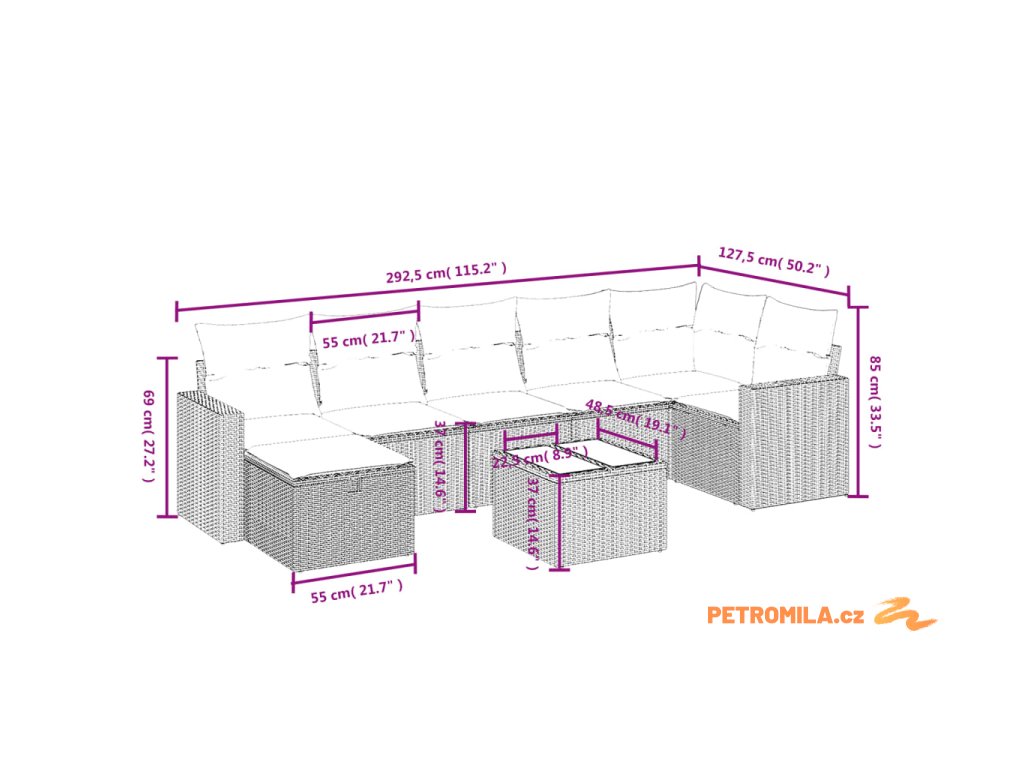 Sada zahradních pohovek s polštářem 8 pcs Béžová Poly ratan
