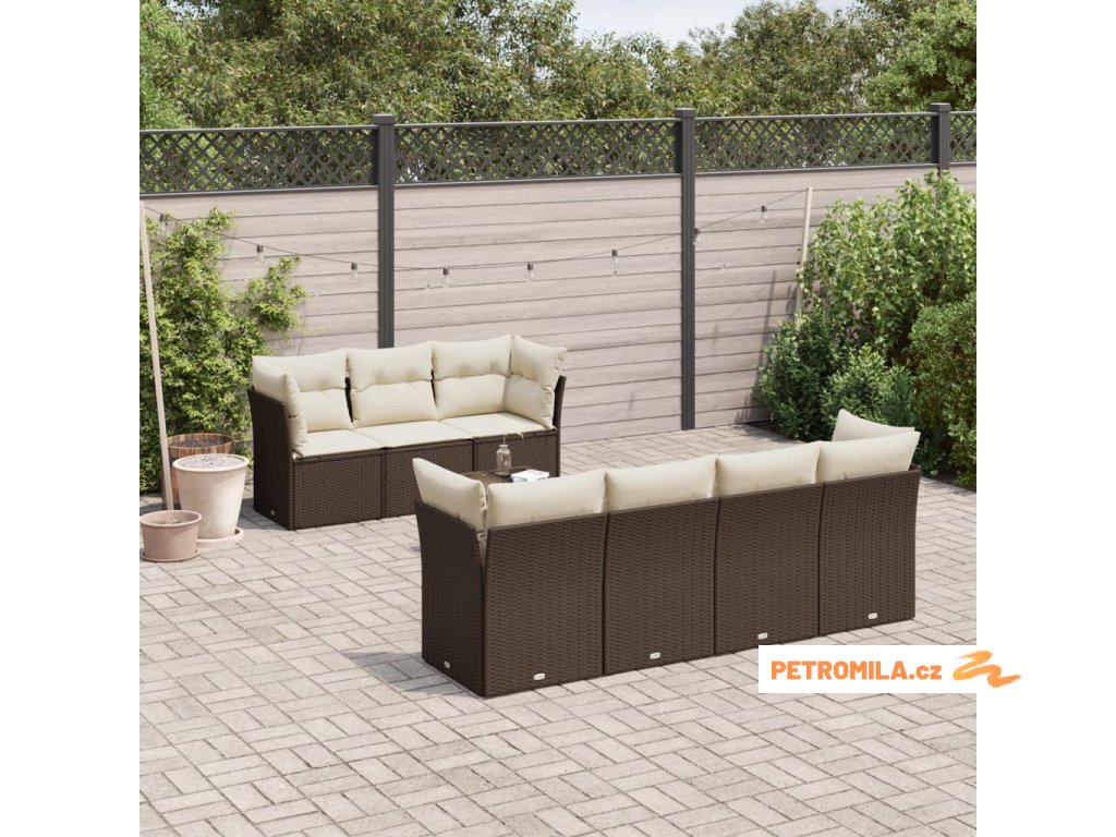 8dílná zahradní sedací souprava s poduškami hnědá polyratan