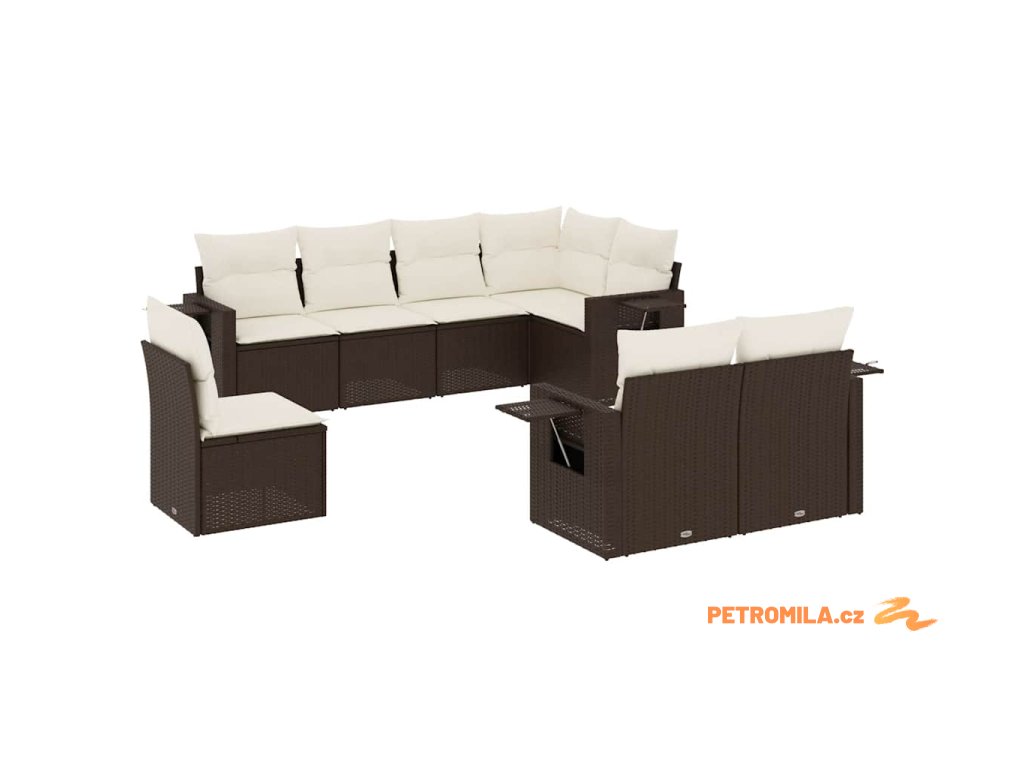 8dílná zahradní sedací souprava s poduškami hnědá polyratan