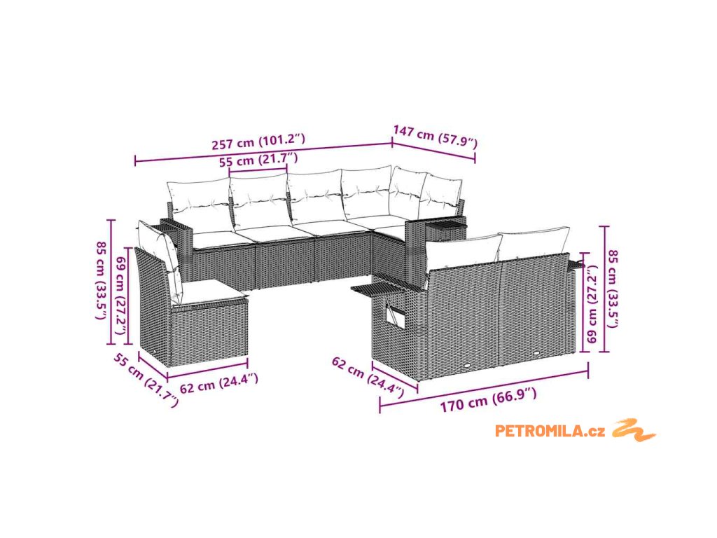 Sada zahradních pohovek s polštářem 8 pcs Béžová Poly ratan