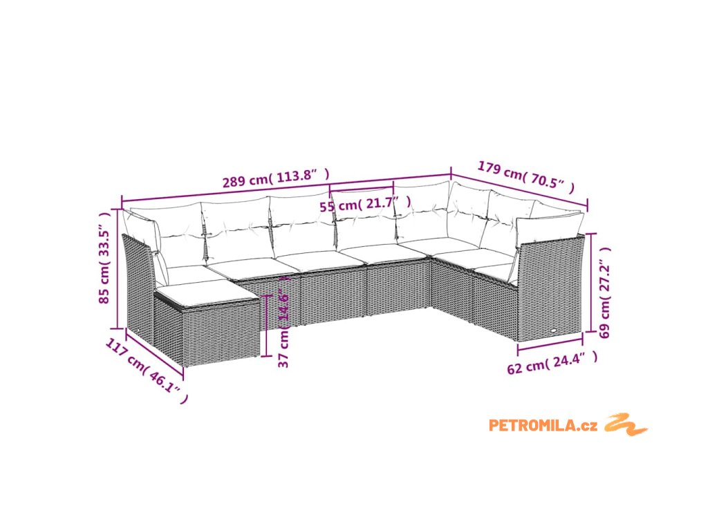 8dílná zahradní sedací souprava s poduškami hnědá polyratan