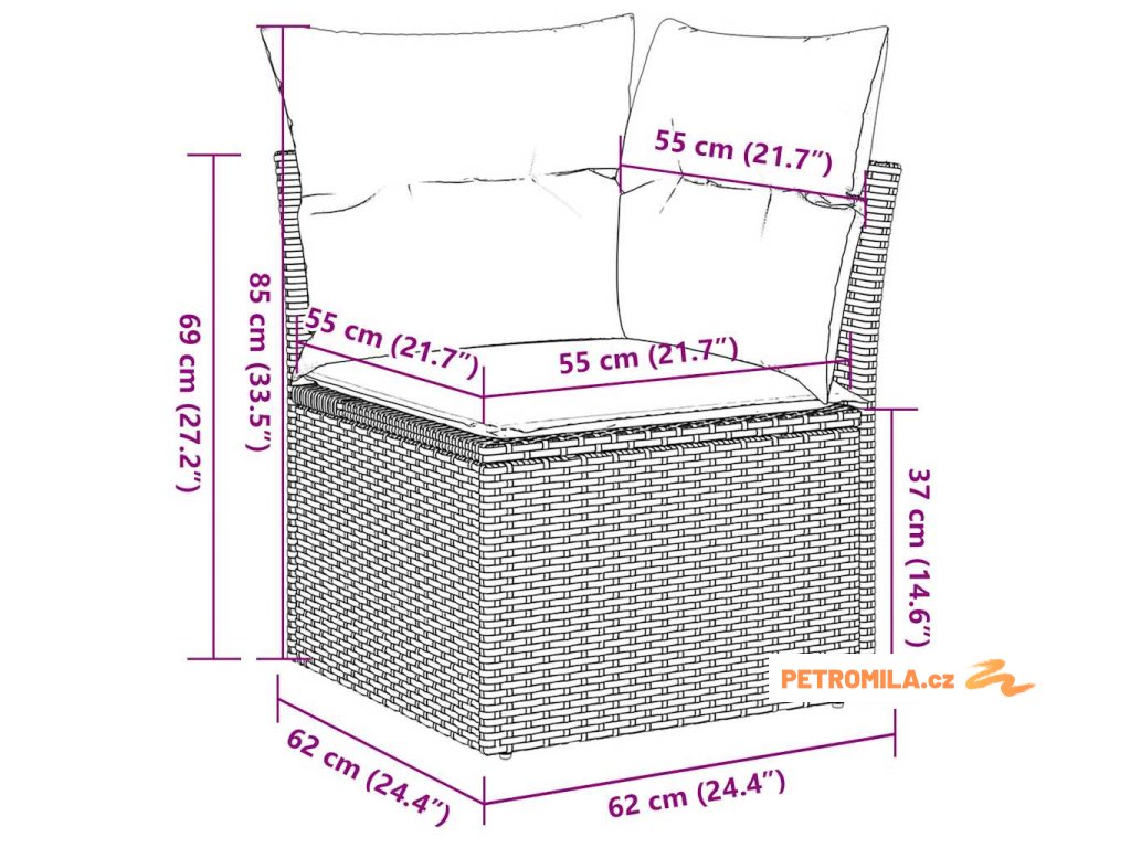- Rozměry podušky na sedák: 55 x 55 x 3 cm (Š x H x T)