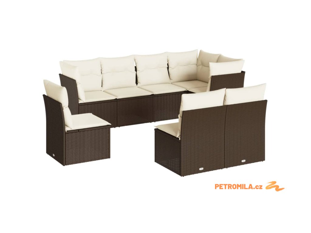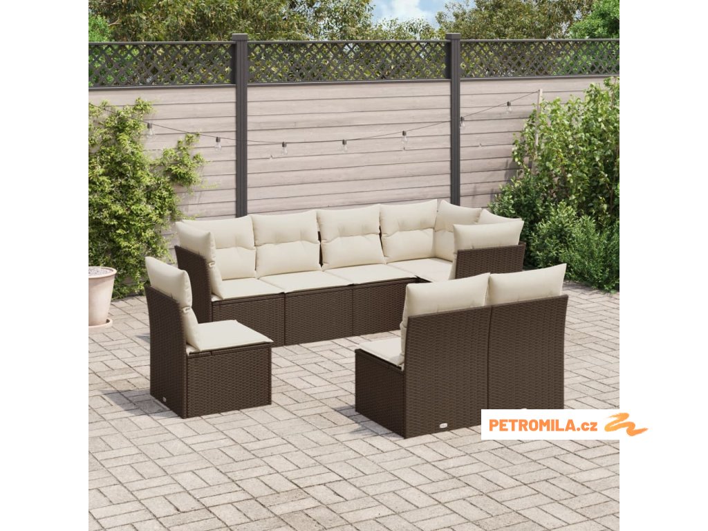 8dílná zahradní sedací souprava s poduškami hnědá polyratan